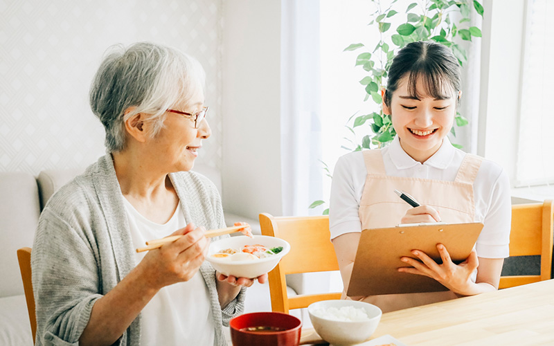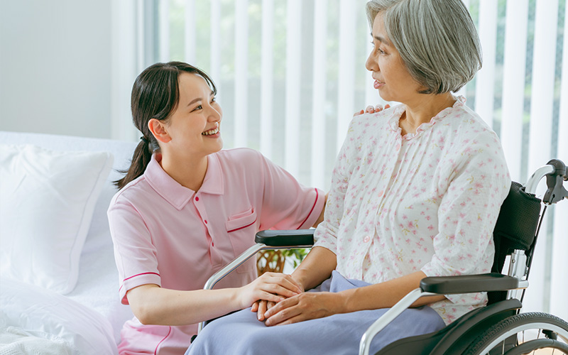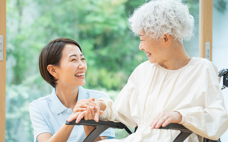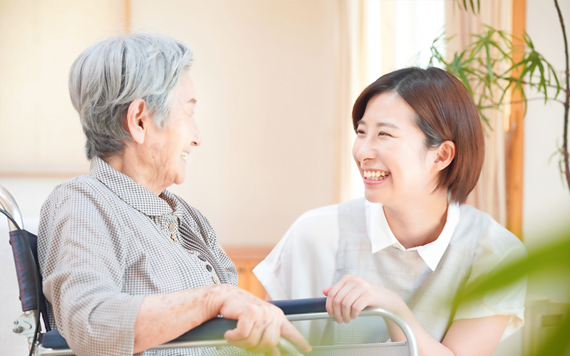 歩行訓練は、改めて歩行訓練の時間を設けるのではなく普段車イスの方も、施設内の移動は全て利用者様の足で移動して頂きます。常に足腰を使う事で筋力が活性化されていきます。また、歩行困難の方が少しずつ自分の足で歩けるようになる事で活力がうまれていきます。この事がご利用者様の心身に対して好循環がうまれると考えております。 -